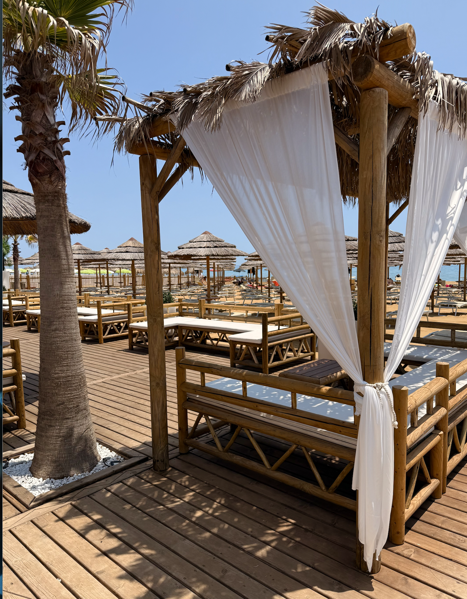 Scegli la tua postazione preferita tra la pagoda standard con due lettini o la pagoda plus con quattro.