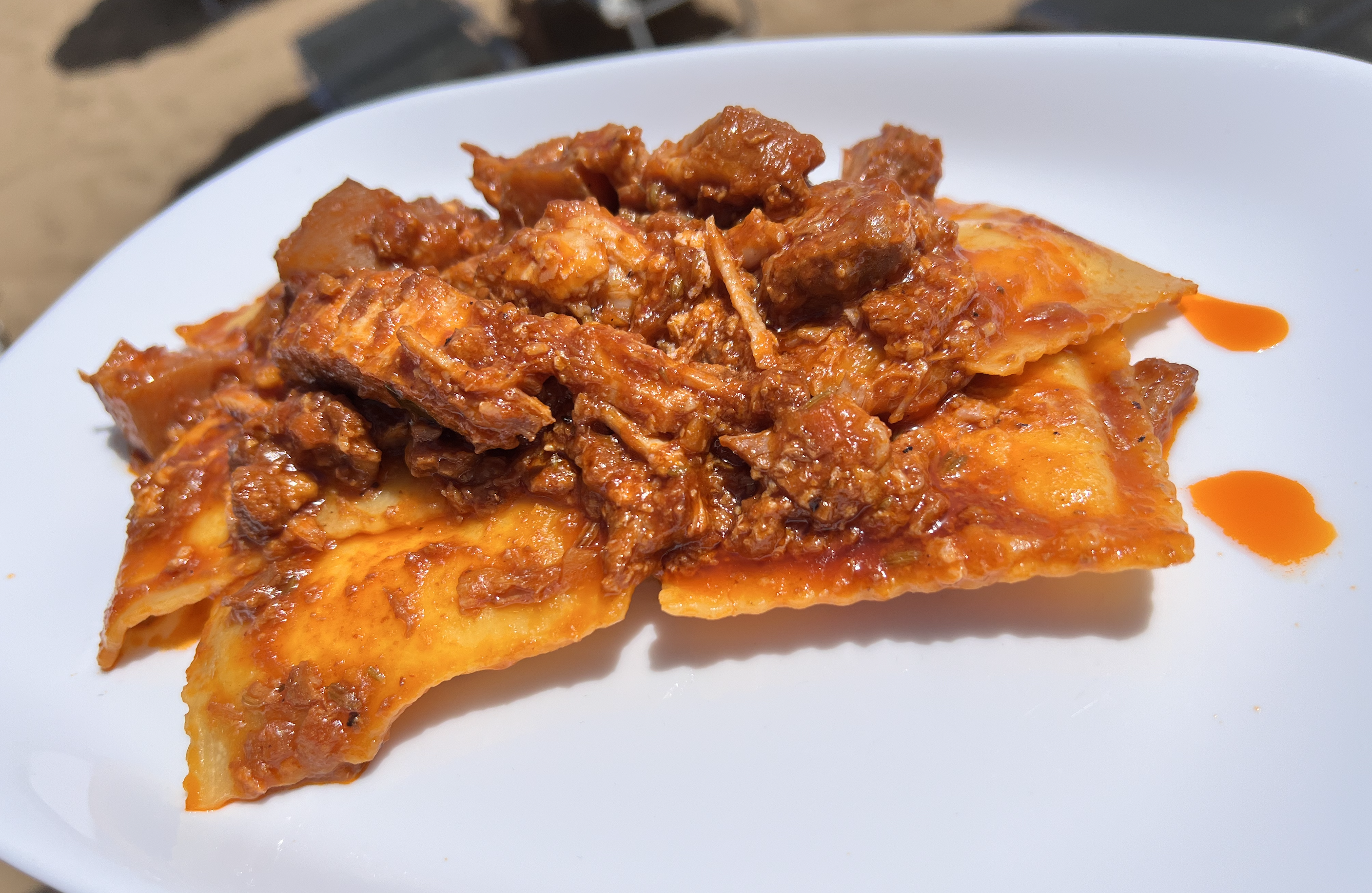 RAVIOLI DI CERNIA CON BISQUE DI GAMBERONI