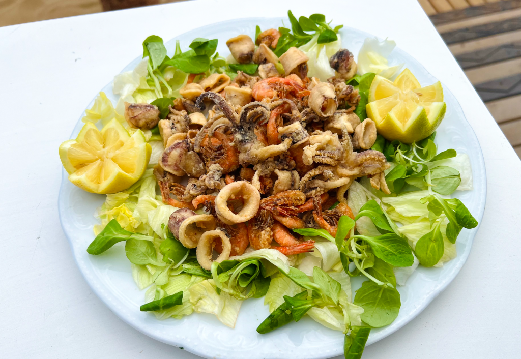 Frittura di calamari, gamberetti e polpo. [1, 14]