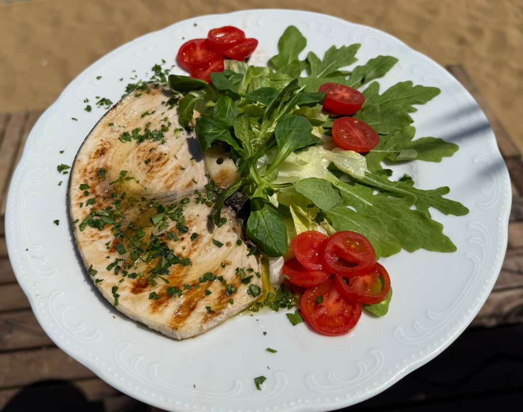 Pesce spada fresco* locale servito con contorno di insalata € 24,00